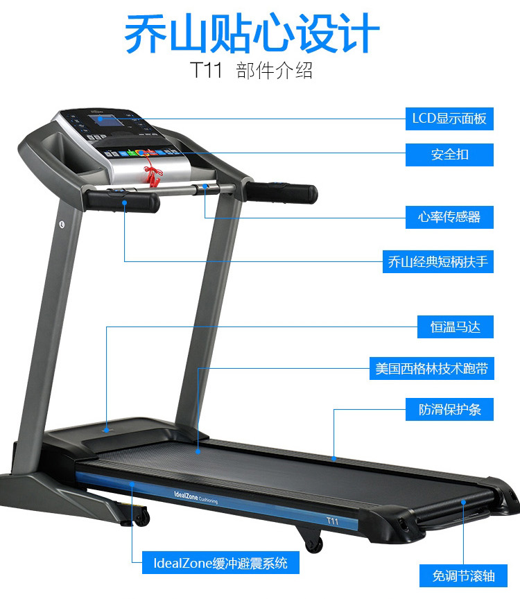 • 產(chǎn)品名稱:喬山(JOHNSON)家用跑步機 家用室內(nèi)電動跑步機 輕商用跑步機 T11