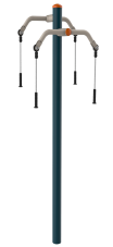 a.主要承載立柱尺寸:φ114×3.0mm; b.主要承載橫梁尺寸:φ76×3.0mm; c.器材活動連接處采用軸承連接,軸承直徑φ30mm; d.采用塑膠把套,以增強使用時的舒適度感,手柄端部直徑φ52mm;上肢牽引器活動把手(不含柔性部件)質量500g; e.器材承受主要載荷的牽索、連接鉤環、連接接頭的抗拉力14500N; f.活動桿件底部距離地面的距離為1910mm; g.安裝方式:采用直埋式 埋地深度:600mm h.地基尺寸:500×500×700mm |