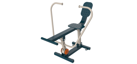在座板上坐定,手握手扶,腳踩踏板,作雙臂伸縮運動。 |