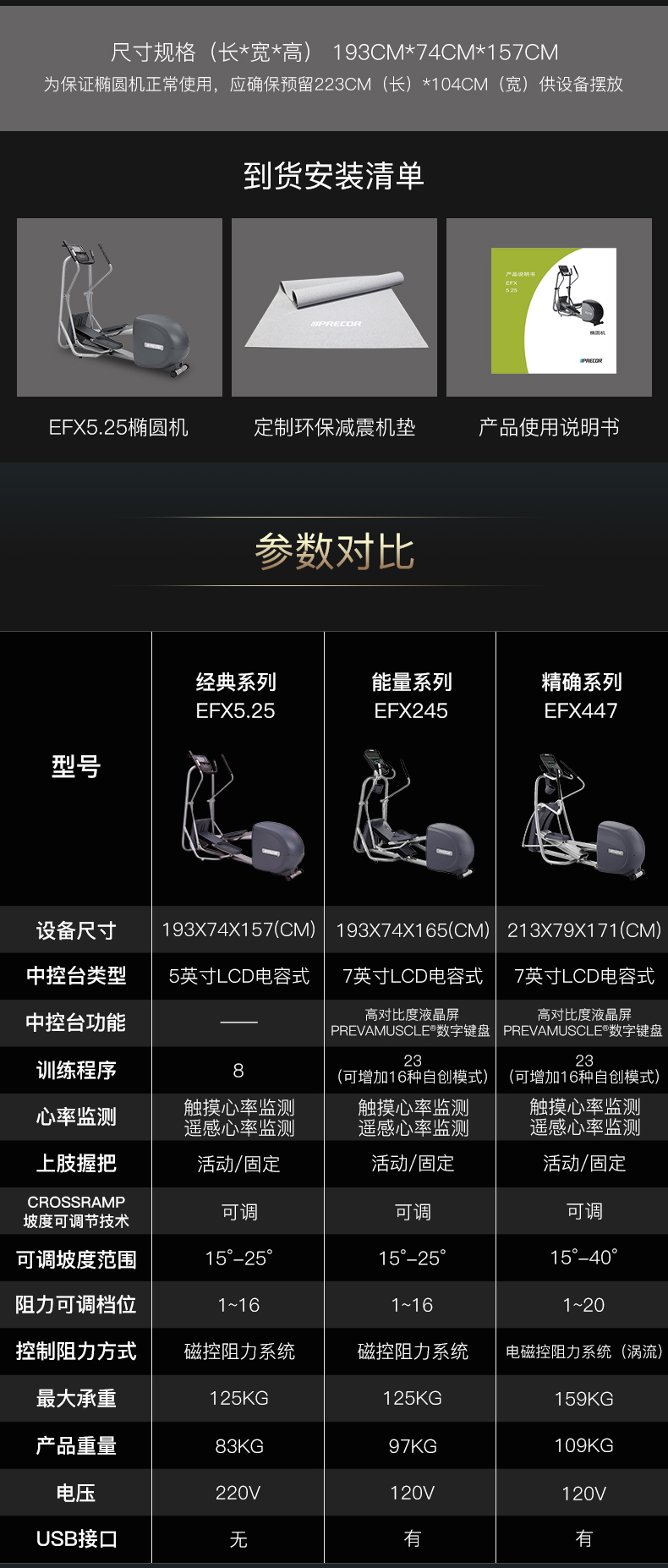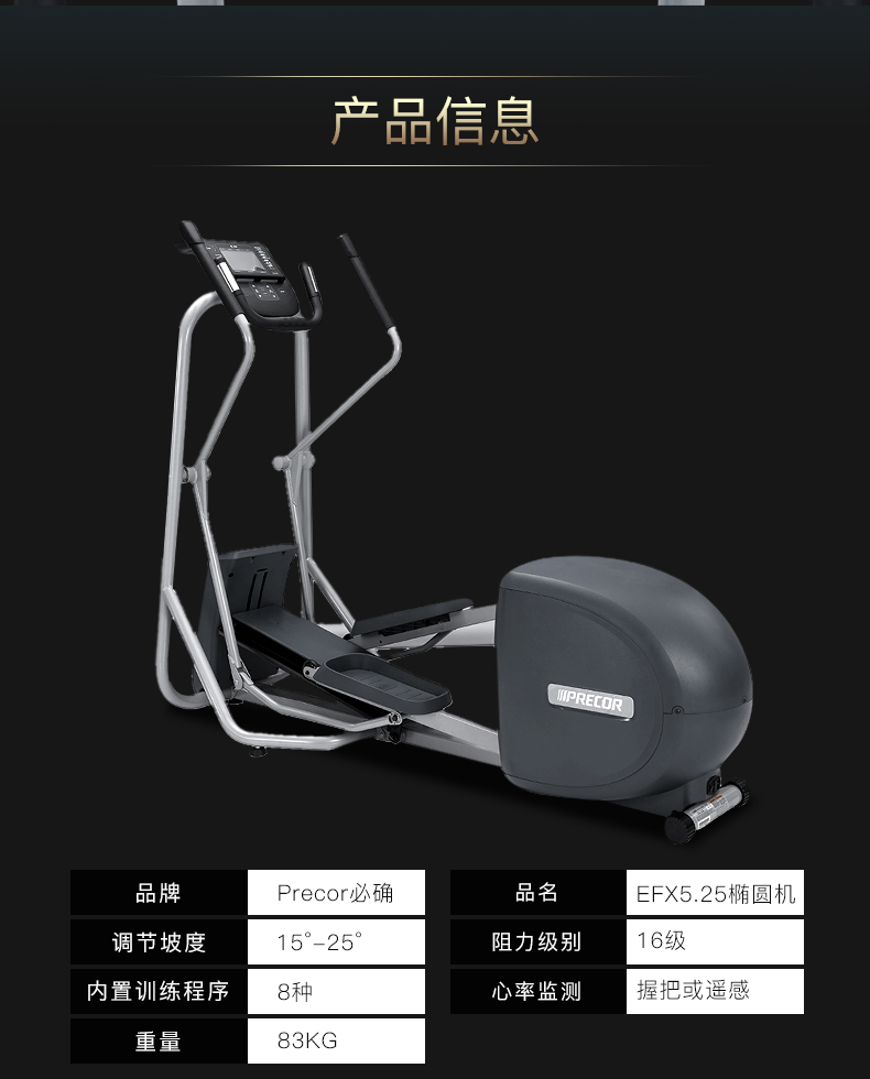 • 產品名稱:Precor/必確EFX5.25家用橢圓機靜音磁控踏步健身器材