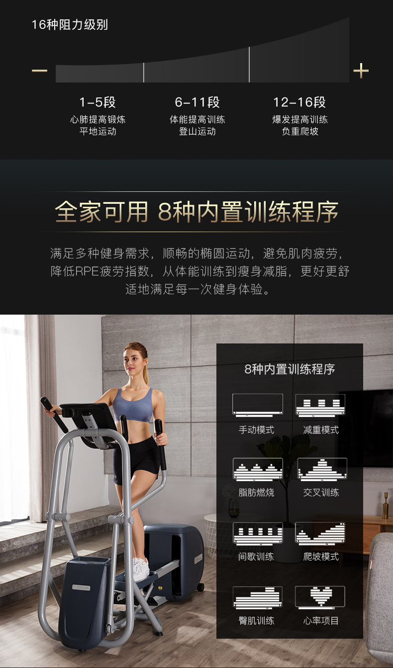 • 產品品牌:Precor/必確EFX5.25家用橢圓機靜音磁控踏步健身器材